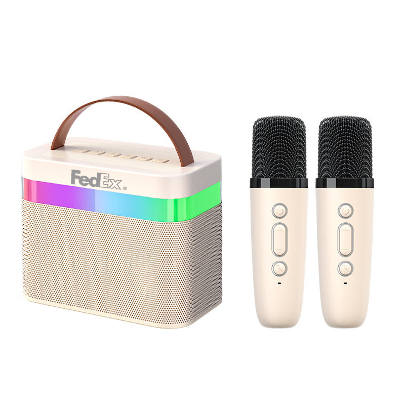 This mini karaoke machine delivers great sound with powerful, balanced audio and minimal distortion. Designed for hours of entertainment, it features voice-changing effects and versatile functions including Bluetooth connectivity. Each set includes one mini karaoke machine, two wireless microphones, a charging cable, and a user manual. Note: keep microphones away from the speaker to avoid sound feedback.