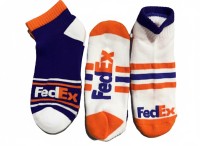 Two pairs of ankle, FedEx Logo. **ONE SIZE FITS MOST** •Made In Italy •80% Mercerized Cotton, 17% Polyamide, 3% Elastane •Reinforced Toe and Heel •Additional support for your feet •Keeps feet dry throughout the day •Extra support for your feet •Absorbs moisture and reduces friction