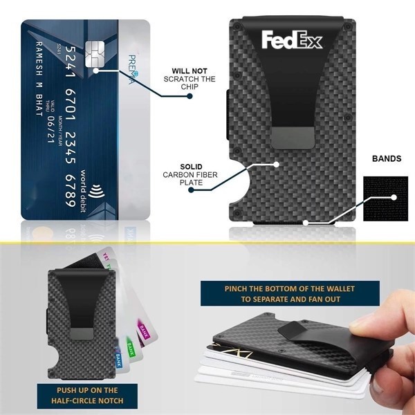 Experience life without worrying about phishing, identify theft and other types of electronic fraud with this card wallet with RFID protection. Made of high quality carbon fiber material, this wallet holds identification, bank and credit cards of all kinds while protecting your personal information. The attached clip is great for folded cash or can be removed if you prefer!