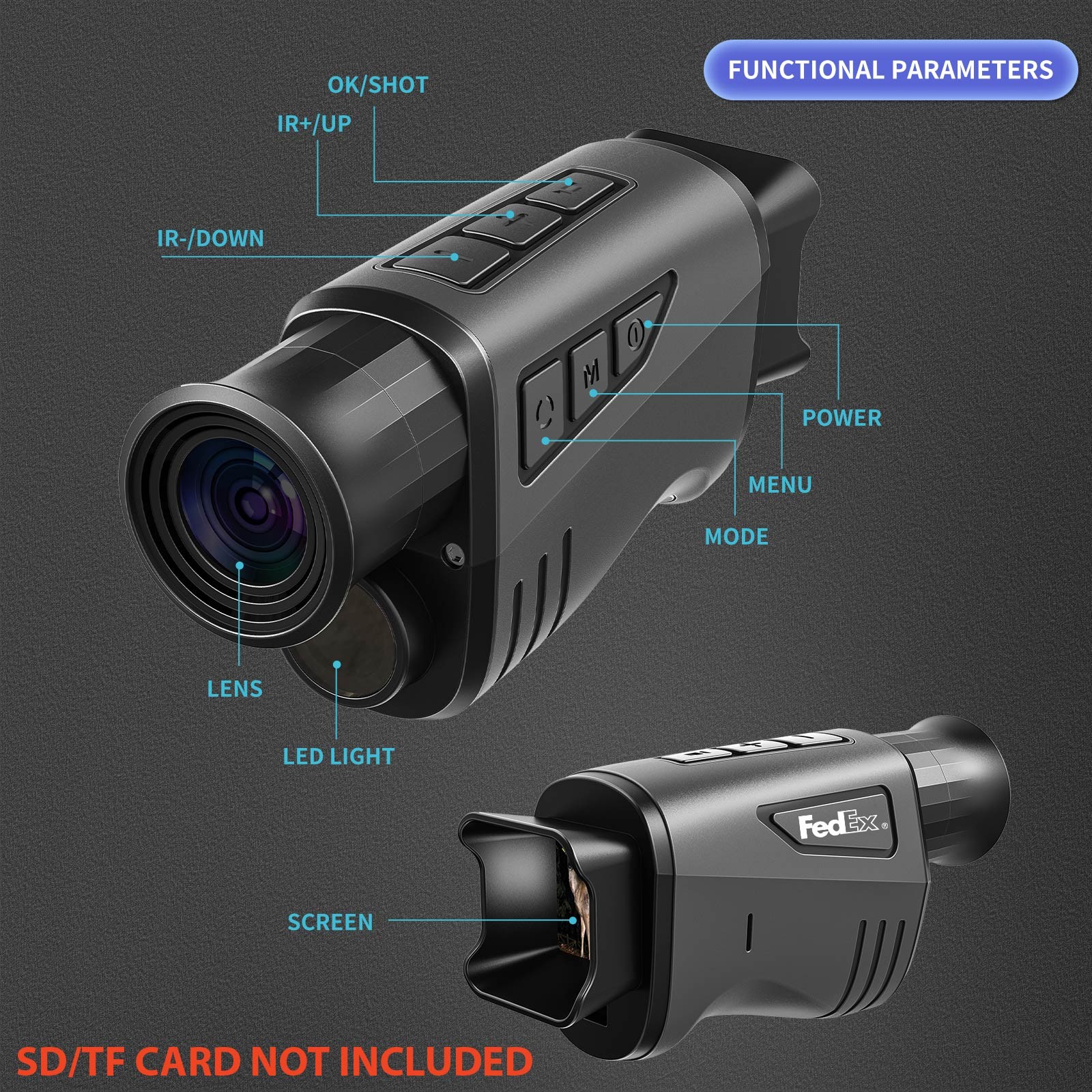 *SD/TF CARD NOT INCLUDED* The DNV2000 is a compact, high-performance night vision monocular built for hunting, surveillance, and wildlife observation. Featuring a 16x digital zoom, 1080p video recording, and photo capture up to 12MP, it delivers clear visuals even in total darkness. Its built-in adjustable infrared illuminator provides visibility up to 300 meters, making it ideal for low-light and nighttime use. Durable and weather-resistant, the DNV2000 supports SD card storage (up to 32GB), runs on batteries, and operates in temperatures from -10°C to +50°C. Lightweight and user-friendly, it’s a reliable tool for outdoor enthusiasts and security professionals alike.