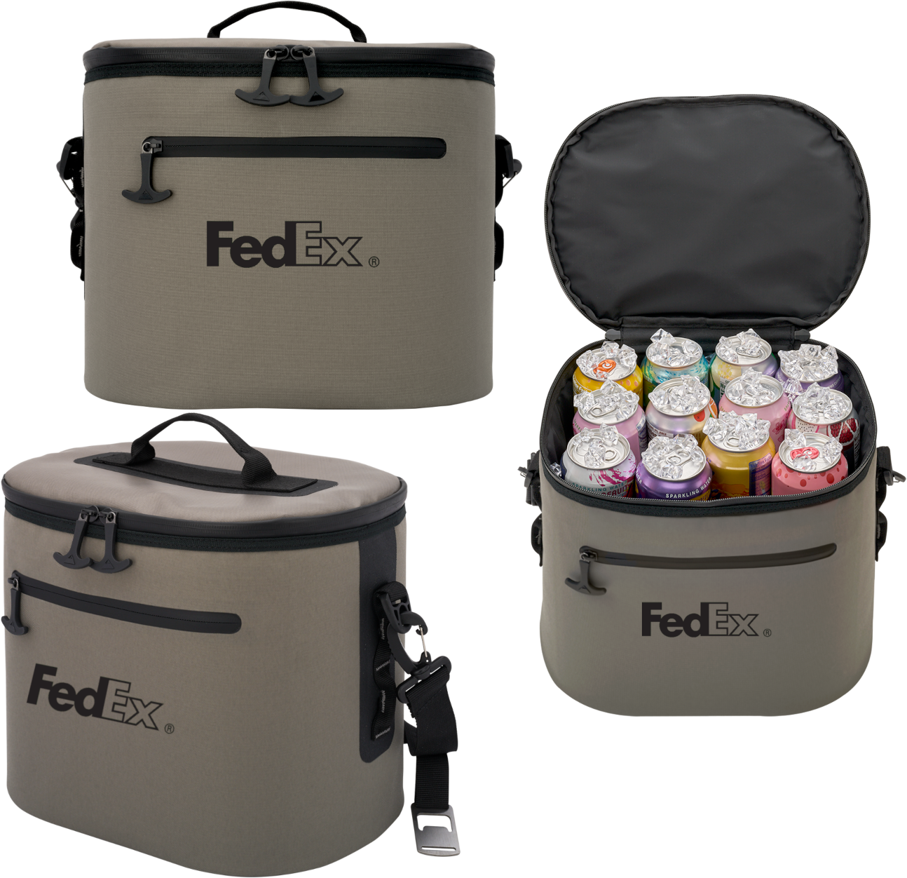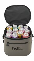 -10"h x 13"w x 9"d -Olive, Black -Storage Capacity: 16 Liters -Durable top-loading 24 can waterproof cooler featuring 100% recycled Polyester and extra thick foam insulation Made from waterproof 100% RPET 600D Polyester/TPU, 10mm PE foam, and 0.38mm Tarpaulin. Leak-resistant heat-sealed liner and seams Adjustable and removable padded shoulder strap Features water resistant zippers, glove friendly zipper pulls, front zippered pocket, side daisy chains, top handle, and an attached Stainless Steel bottle opener