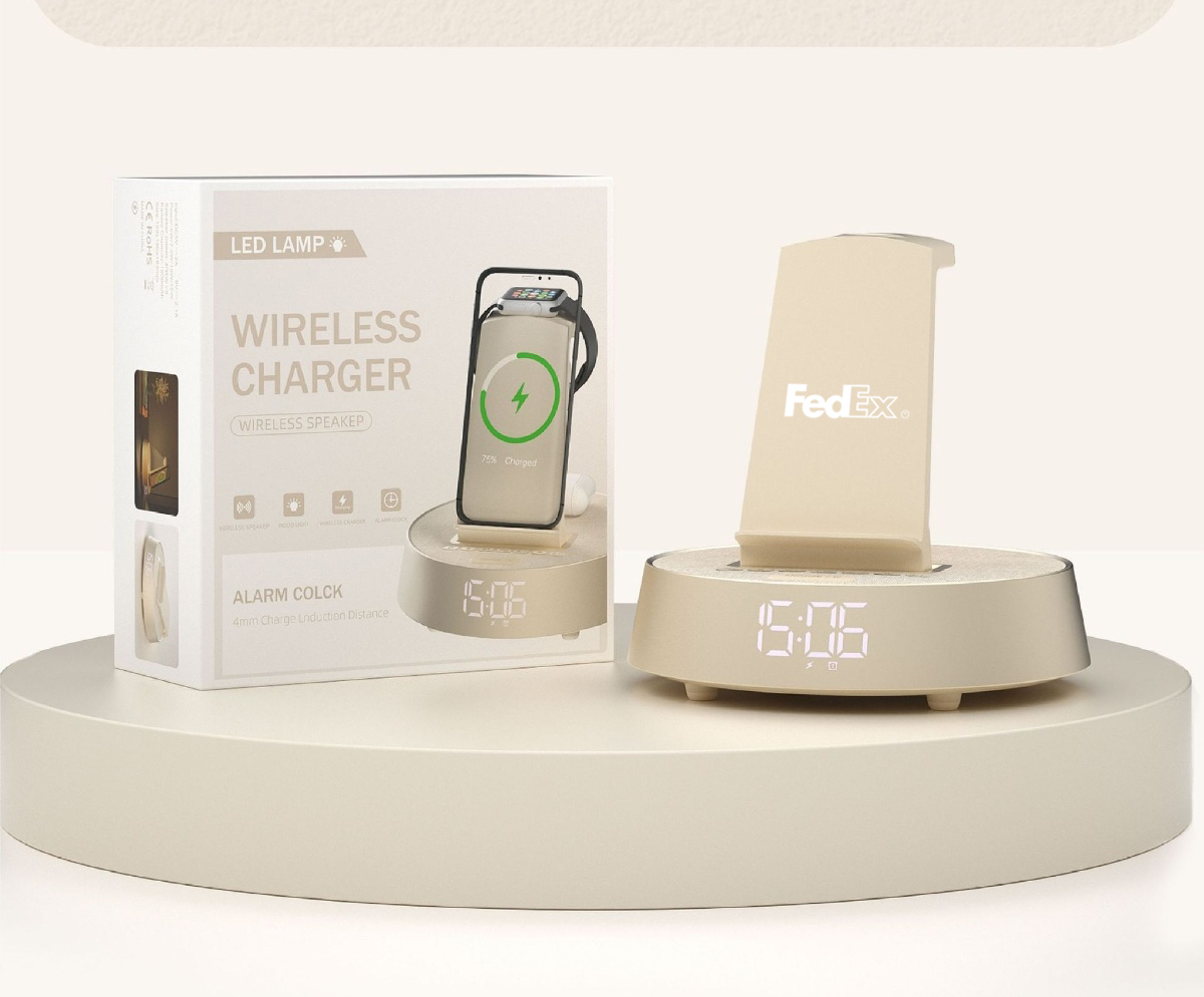 Meet your all-in-one bedside essential: a dual alarm clock with snooze, wireless charging for your phone, watch, and earbuds (devices not included), plus a built-in Bluetooth speaker, FM radio, and adjustable night light. The clear digital display offers both 12- and 24-hour formats, while the wireless charger keeps your devices powered safely and tangle-free. Sleek, space-saving, and functional, it’s the perfect upgrade for your nightstand-complete with adapter, cable, and manual.