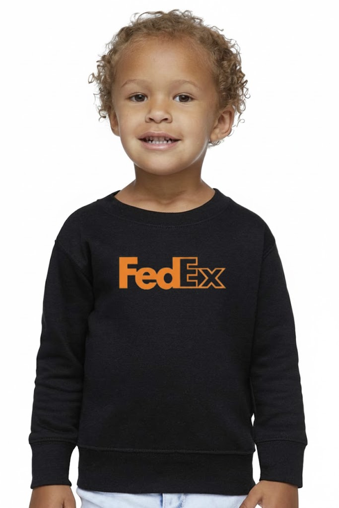 7.5 oz, 60/40 cotton/polyester, Cover stitched collar, shoulders, armholes, ribbed cuffs and waistband, Easy Tear™ label. Orange Glow FedEx logo.