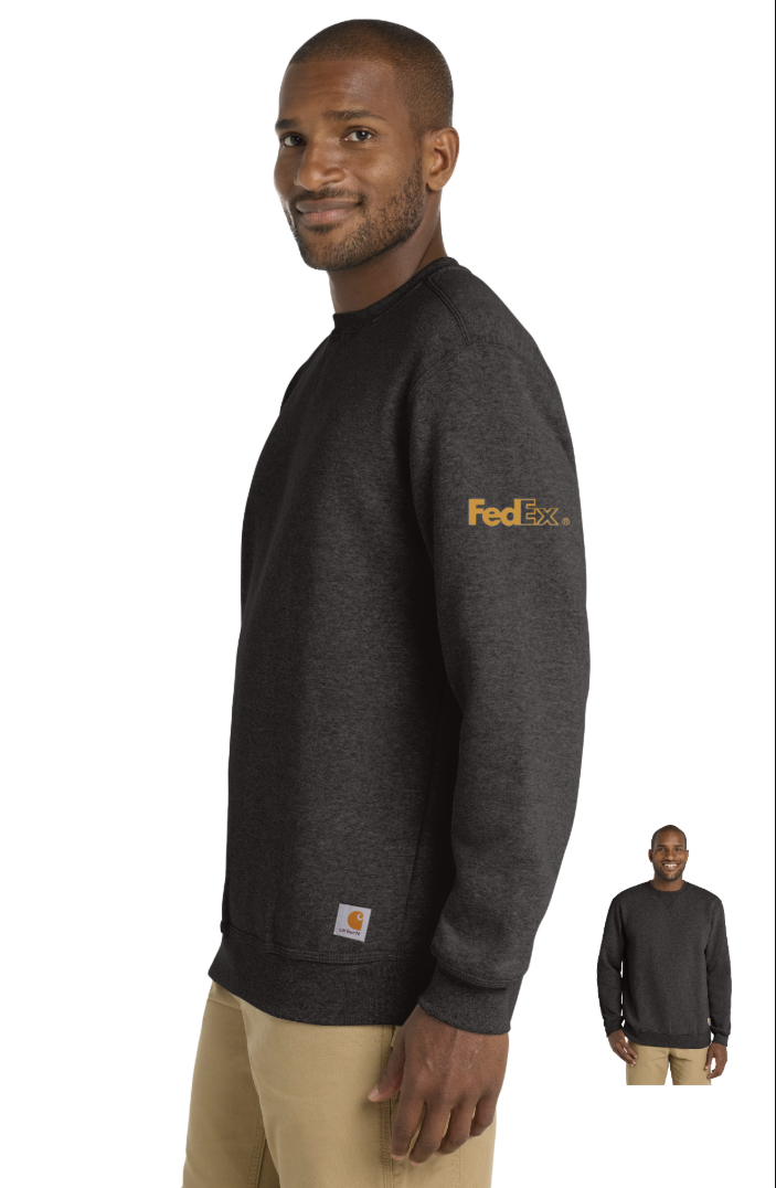 A comfortable layer for when the temperature drops, this sweatshirt is made of a soft cotton blend. To seal out the cold and lock in the warmth, it features stretchable spandex rib knit cuffs and waistband. 10.5-ounce, 59/41 cotton/poly blend, Front-neck V patch for easy on/off, Stretchable, spandex-reinforced, rib knit cuffs and waistband, Carhartt label sewn on lower left front, Loose fit