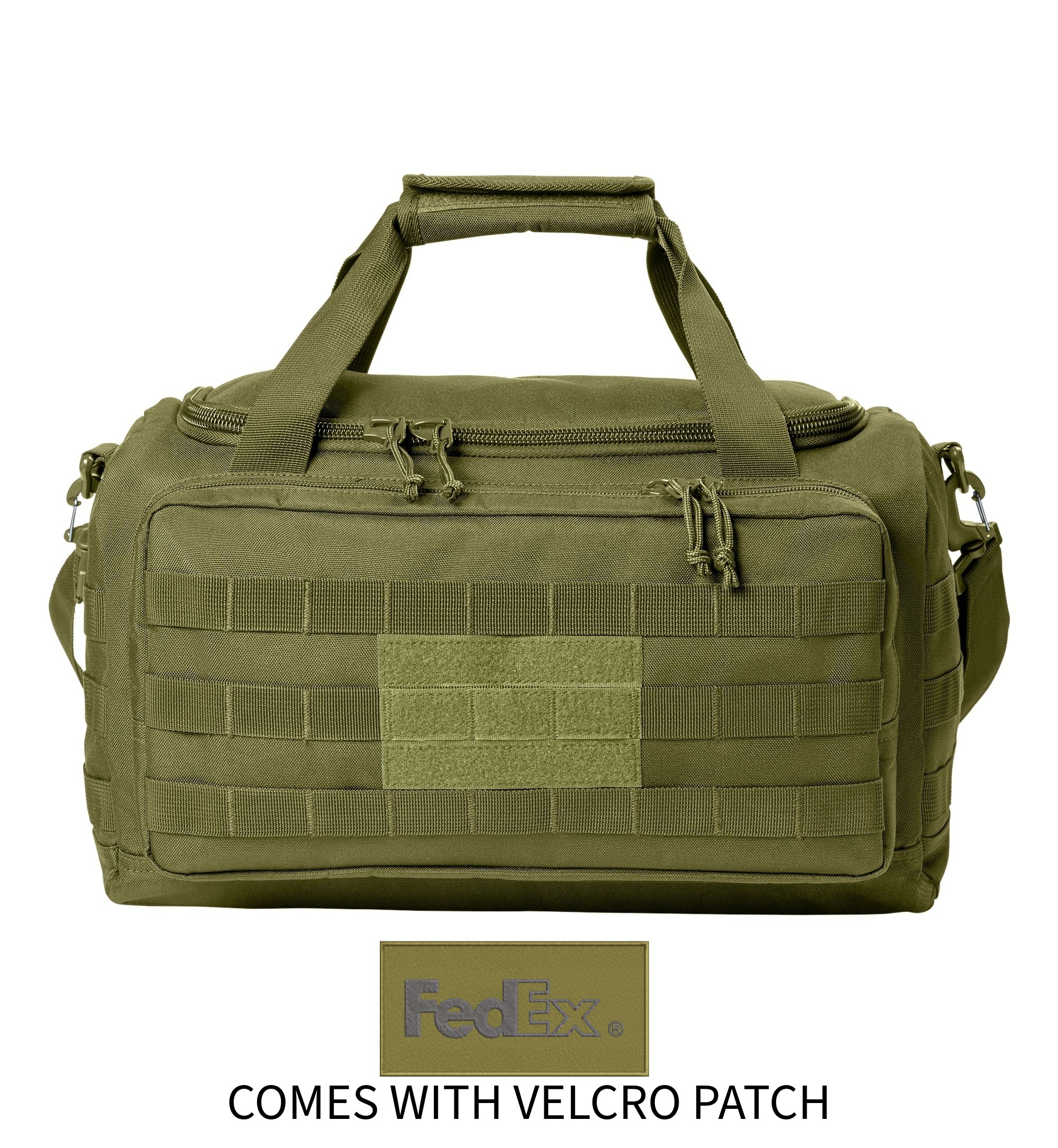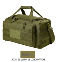 Compact—yet tactical feature-heavy—this gear bag is rugged and functional. Loop panels stand at the ready to display patches and badges. • 600D polyester canvas • D-shaped, zippered main compartment • Interior storage pockets • Web carry handles with padded handle wrap • Adjustable, removable, padded shoulder strap • Side daisy chains • Front zippered pocket with daisy chain and loop panel for badges and patches Note: Bags not intended for use by children 12 and under.