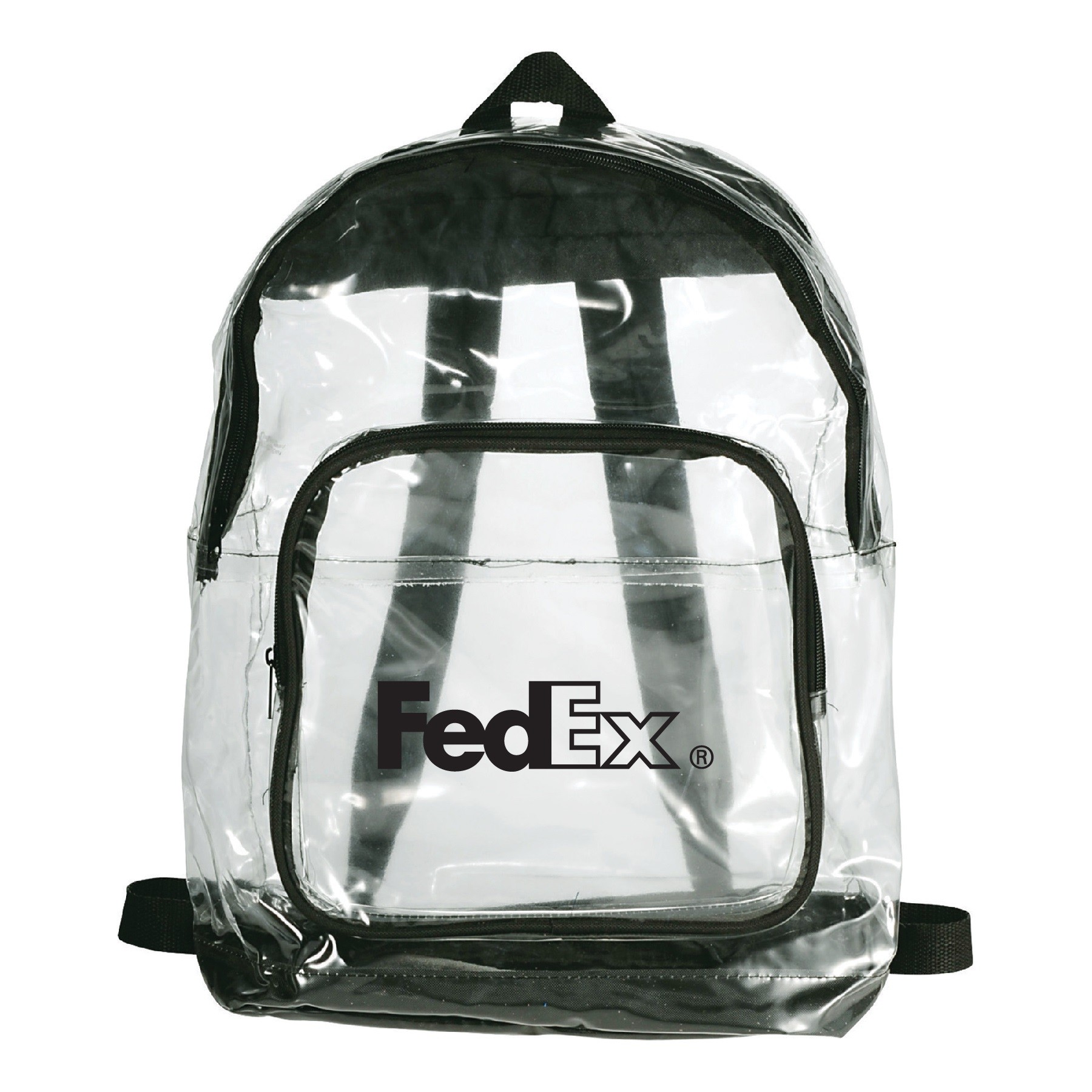 The Rally Clear Backpack is made from see-through PVC material for easy inspection of its contents, perfect for concerts, sporting events, high-security workplaces, and more. It contains a large zippered main compartment, has a reinforced 210D base, and features a large gusseted zippered front pocket with a protective flap. The Rally also has adjustable padded shoulder straps and a top carry-handle for comfortable on-the-go transportation.