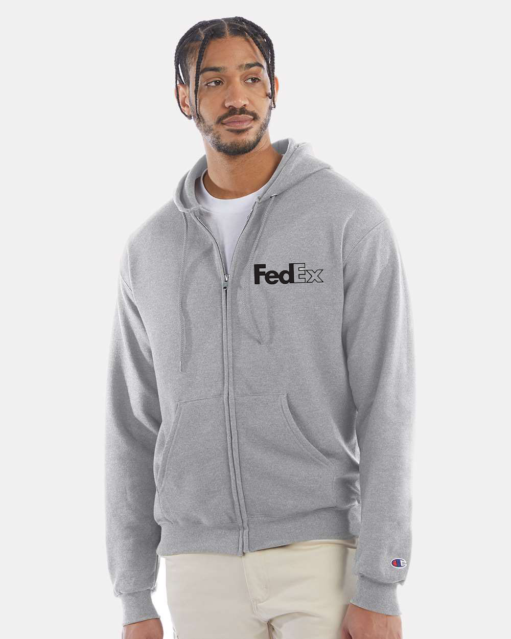 -9 oz./ 50/25/25 cotton/polyester/recycled polyester -Durable cover-stitching throughout -Two-ply hood with dyed-to-match drawcord -Hidden zipper -1x1 rib with spandex at waistband and cuffs -Split-pouch pockets -Champion āCā logo on left sleeve -Proud member of the U.S. Cotton Trust Protocol. Made with OEKO-TEX certified low-impact dyes. We reduce plastic waste by the removal of polybags from all products except color White