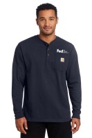 This henley is made of heavyweight cotton jersey and cut generously for a roomy fit. -Durable 6.75-ounce, 100% cotton jersey knit -Rib knit crewneck -Henley collar with three-button front -Tagless neck label -Left chest pocket -Side-seam construction minimizes twisting -Carhartt label sewn on left chest pocket -Rib knit cuffs -Loose fit