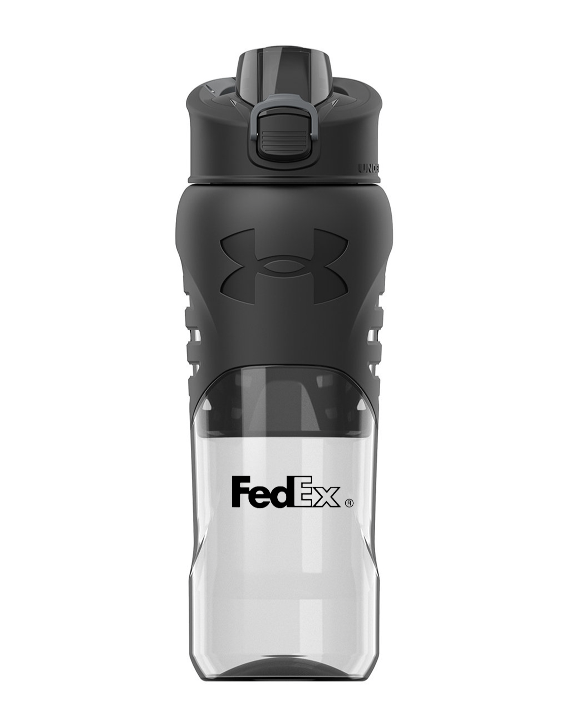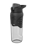 -24 oz. (709 mL) Tritan™ Plastic water bottle with non-slip Silicone grip upper body -Eastman Tritan™ Plastic is durable, shatter, stain and odor resistant -Leak-proof, lockable push-button see-thru lid -Built-in carry handle with integrated carabiner clip -Patent pending self-draining cap during wash -Designed for use with cool beverages only -Top rack dishwasher safe -Do not microwave; do not place in freezer