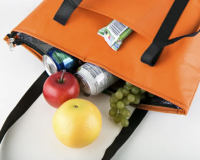 Portable 80 GSM non-woven polypropylene foil-lined cooler bag with black contrast double handles for comfort. Top zip access for easy access. 12 CAN CAPACITY