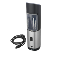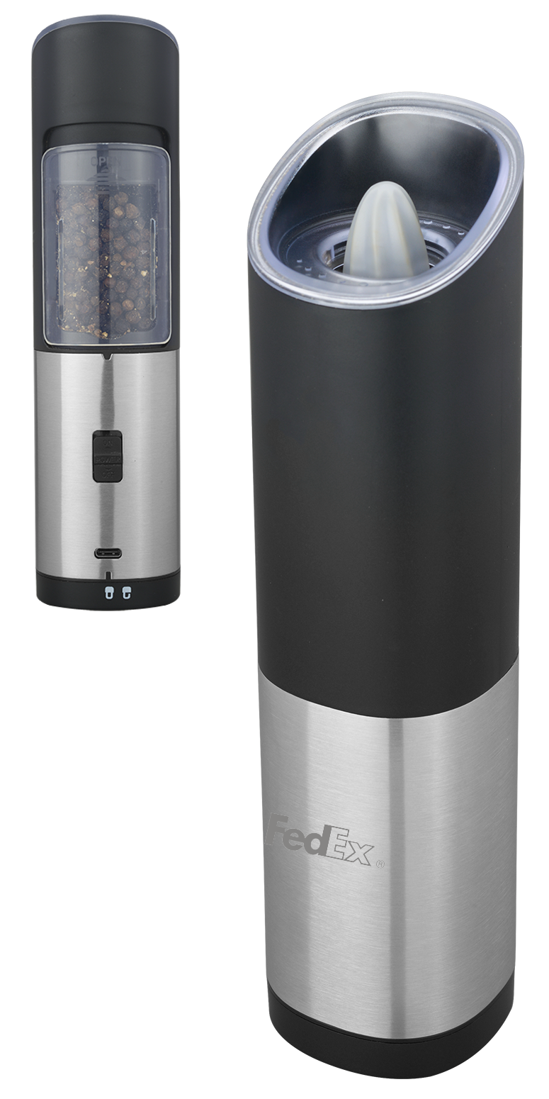 -Power button and gravity activated, simply turn upside down and get fresh ground spice or seasoning. -Black Plastic housing with Stainless Steel accent -The blue LED light will turn on automatically when the grinder is in operation. -Ceramic grinder on the top help keep surfaces free of residue. -Adjustable grinder knob can easily choose the coarseness of your spice, salt or peppercorn. -Refillable container at the back can hold a large amount (2.9oz / 85ml) of spice, salt or peppercorn. -Includes 4 rechargeable batteries and a Type-C charging cable.